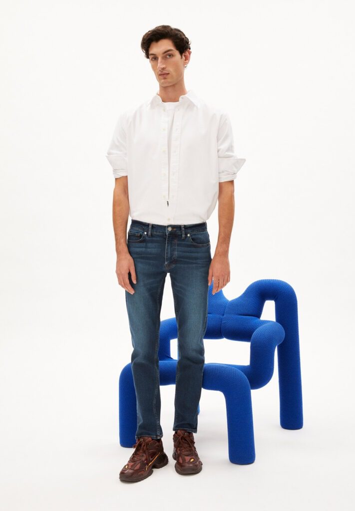 ARMEDANGELS werkt voortdurend aan het verhogen van het gebruik van gerecycled katoen in plaats van nieuwe vezels – het percentage gerecycled katoen in het jeansassortiment is gegroeid van 4% naar 33% ten opzichte van de lentecollectie van vorig jaar. Dit weerspiegelt de missie van ARMEDANGELS om producten te maken waar mensen van houden en die zo min mogelijk schadelijk zijn voor de planeet. De volgende stukken zijn gemaakt van 100% gerecycled katoen.