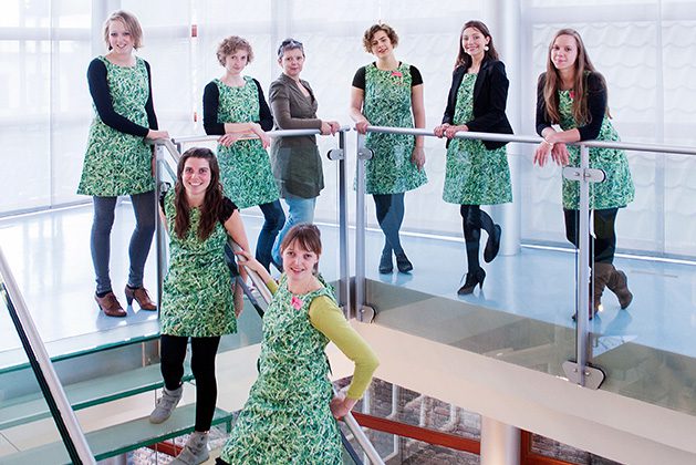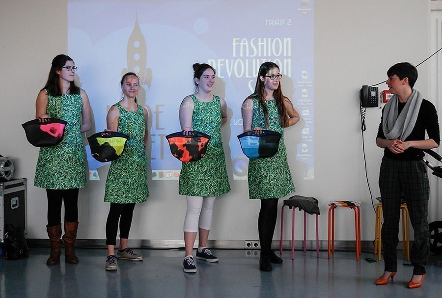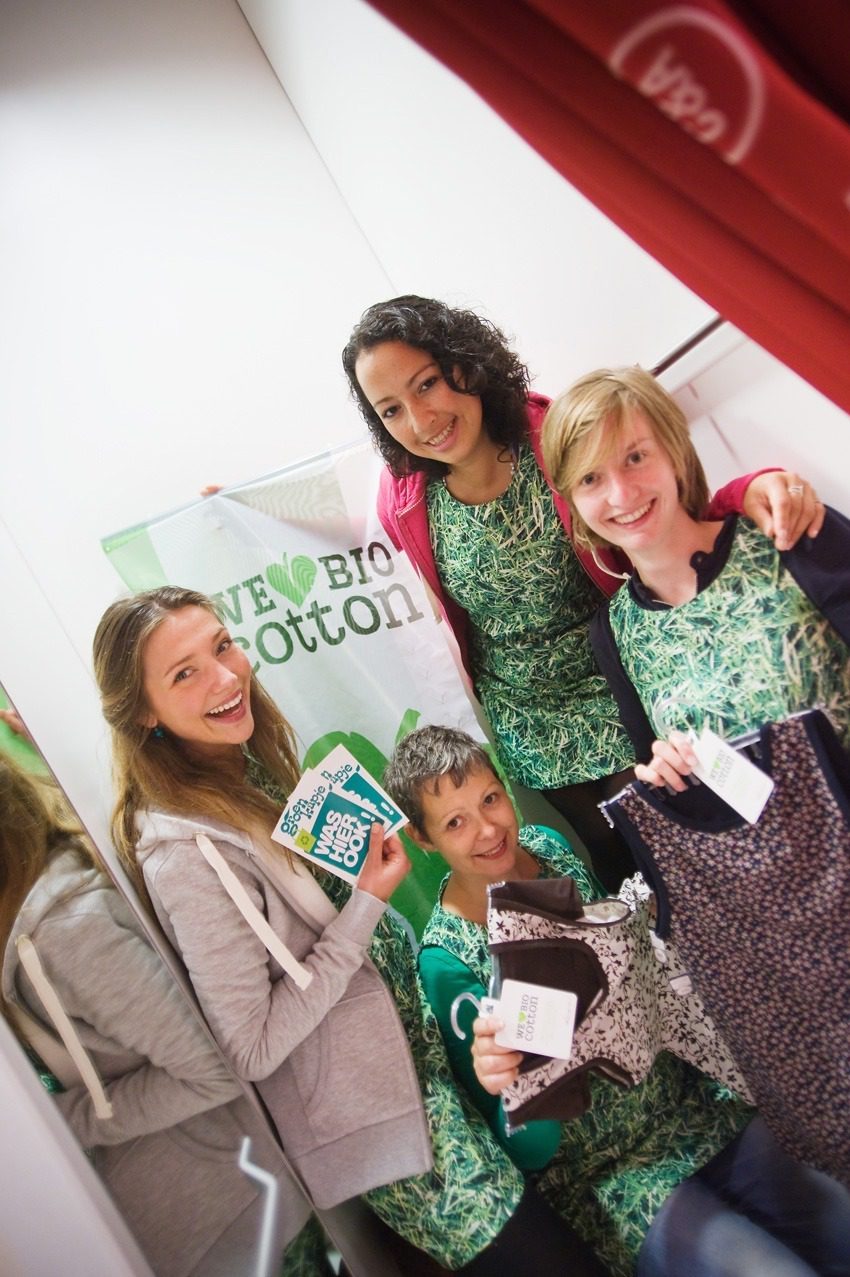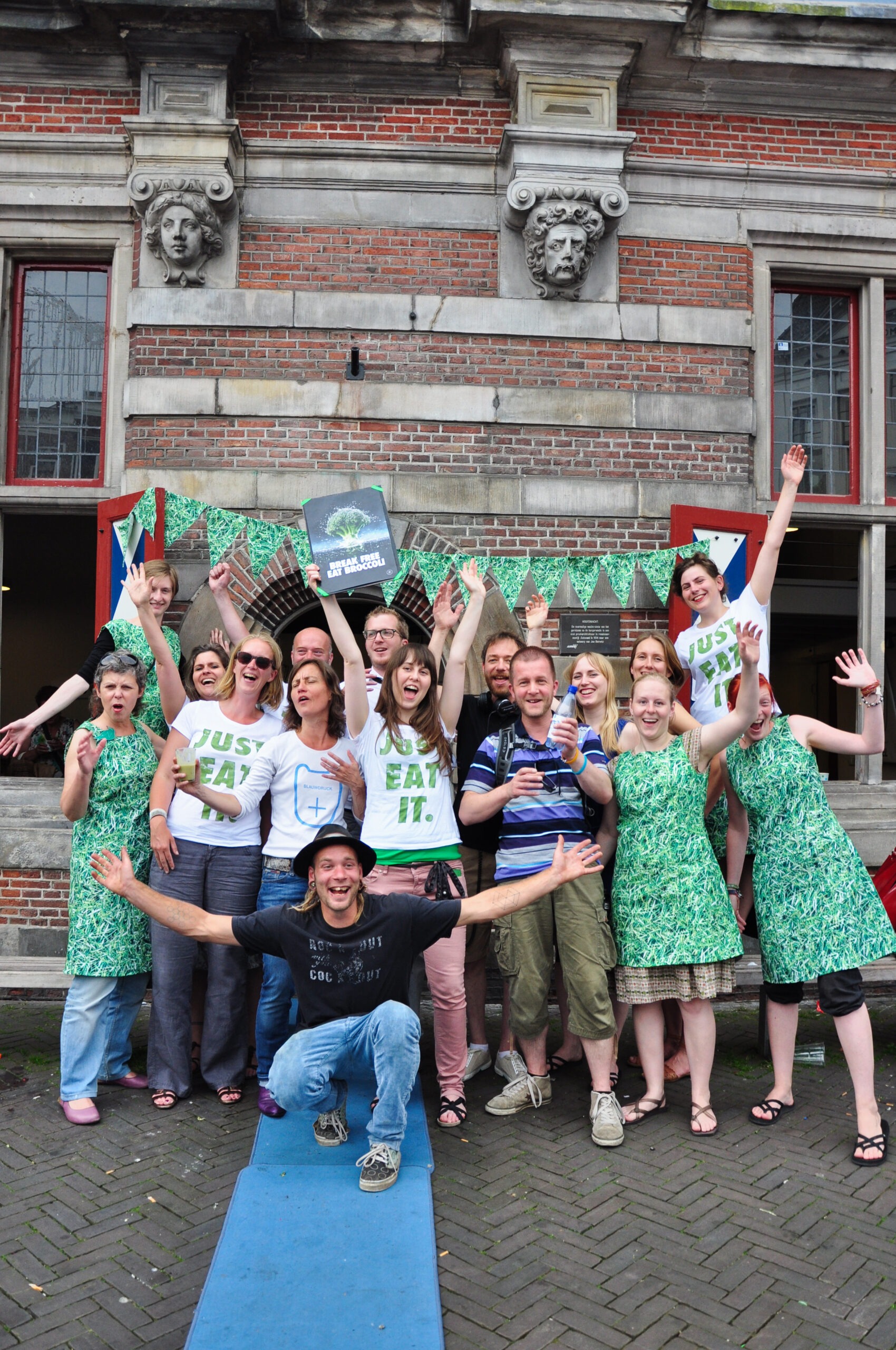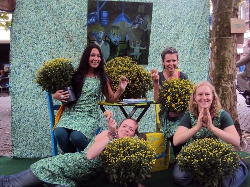 Het idee om duurzaamheid op een frisse manier onder de aandacht te brengen had vorm gekregen in een FRISGROEN duurzaam mode-en leefstijl feest. Om het van mens tot mens ( van hart tot hart) aan elkaar te vertellen, is er een vrijwilligers promotie teams ontstaan -> de Groenkapjes. In het vrijwilligersteam zaten studenten, Zwollenaren en ambtenaren van de gemeente Zwolle die model waren geweest bij eerdere duurzame modeshows. Met regelmaat kwamen we bij elkaar in Cafe de Hete Brij om te denktanken “Hoe kunnen andere Zwollenaren te enthousiasmeren voor duurzaamheid”. Er groeide een Groenkapje team voor guerrilla promotie activiteiten en voor het showen van duurzame mode on the catwalk. Zoals de modeshow bij Stoere Vrouwen event in studio K te Amsterdam.